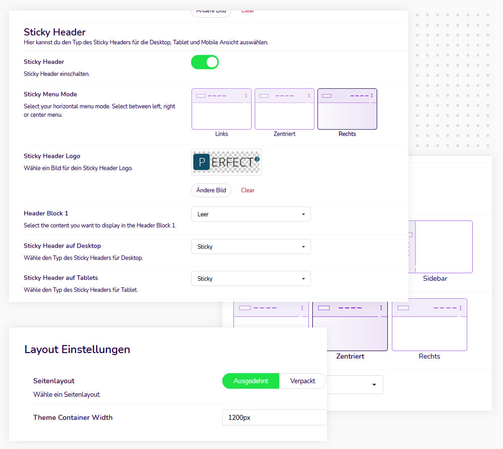 Sie haben mehrere Optionen zur Auswahl und können im Layout Manager problemlos zwischen den Headern wechseln.